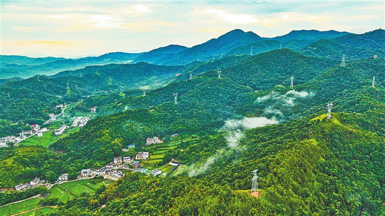 8月21日,赣州市章贡区沙河镇,连绵的青山、云雾、民居,构成一幅美丽和谐的乡村画卷。近年来,章贡区通过统筹实施矿山修复治理、低效林改造提升等工程,有效提升了生态环境质量,推动生态环境持续向好。特约通讯员 胡江涛摄