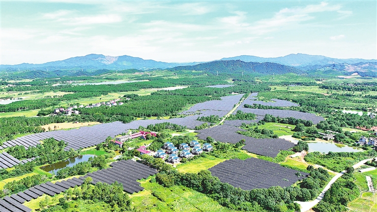 近年来,永丰县采用渔光互补、农光互补、林光互补等光伏发电模式,大力推进新能源产业发展。图为8月22日,在佐龙乡稜溪村,一排排光伏板在阳光下熠熠生辉。通讯员 刘浩军摄