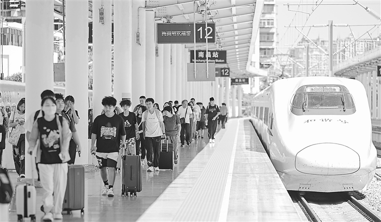 8月25日至9月18日,中国铁路南昌局集团有限公司预计发送学生旅客58.6万人次。其中,江西省预计发送学生旅客40.4万人次。图为8月28日,旅客在南昌火车站有序出站。本报全媒体记者 张翰林摄