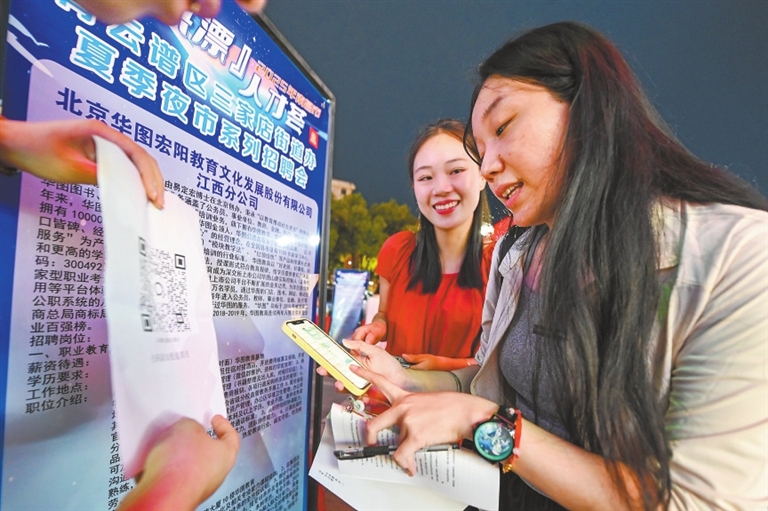 8月24日,2025年“洪漂”人才荟夏季夜市系列招聘会在南昌市青云谱区三家店街道郎贤广场举办。20家企业参与本次招聘会,提供就业岗位78个。通讯员 熊圆圆摄