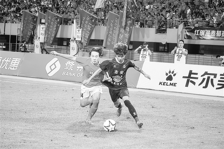 赣州队主场与吉安队的对决同样看点十足。赛前深陷淘汰区的吉安队,此役放手一搏,与赣州队展开对攻大战,通过细腻的短传渗透多次给赣州队防线制造威胁,双方攻防转换节奏极快。但吉安队投入过多兵力进攻,导致后防线出现漏洞。第8分钟,赣州队卢欣抓住机会,禁区内脚尖一点射进破门,为球队取得1∶0领先,这也是卢欣个人本赛季赣超第五粒进球,使其攀升至射手榜第二位。打破僵局后,赣州队进攻状态愈发火热,第16分钟,曾广志接队友卢欣的助攻,再度攻破吉安队球门,将比分扩大为2∶0。落后的吉安队并未放弃,随后发动反击,队员刘小泉凭借个人能力将球打入死角,为球队扳回一城,比分变为1∶2。下半场双方继续展开激烈争夺,但最终未能改写比分。