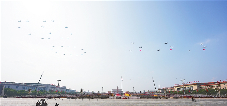 此时此刻,万众瞩目,屏息凝神。东长安街上,徒步方队、战旗方队、装备方队整齐列阵;华北多地,战机起飞,向天安门广场上空集结……