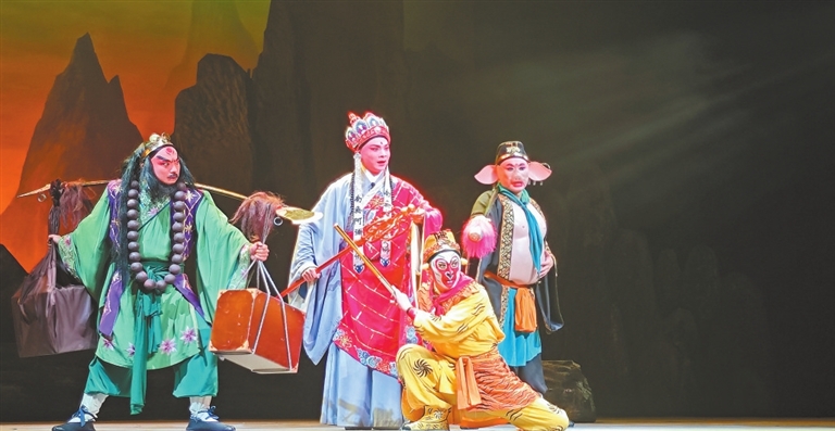 这样的场面并不多见。婺剧又叫“金华戏”,流行于浙江金华、丽水、衢州一带。明清时期,各剧种的戏班相继涌入金丽衢地区,与本地的民间音乐、文化习俗相融合,最终形成了高腔、昆曲、乱弹、徽戏、滩簧、时调6种声腔相互交融的婺剧艺术。一个小众剧种,缘何成为戏曲“顶流”?敬古弥新,婺剧《三打白骨精》圈粉的密码,来源于从“旧”中出“新”、从“新”中入“旧”的平衡,巧妙连接起传统与现代。