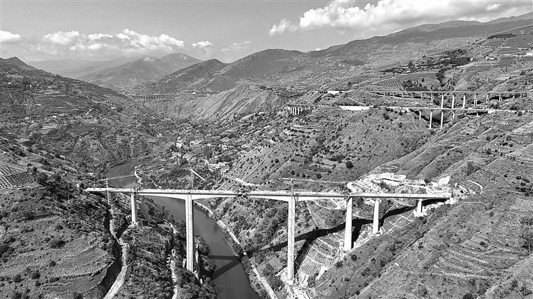 9月7日,渝昆高铁江底牛栏江特大桥实现全桥合龙。大桥的合龙标志着桥隧占比高达87.4%的渝昆高铁建设取得关键性突破,为全线按期建成通车奠定了坚实基础。图片均为当日在云南省昭通市鲁甸县江底镇拍摄的大桥合龙现场。新华社发(张广玉摄)