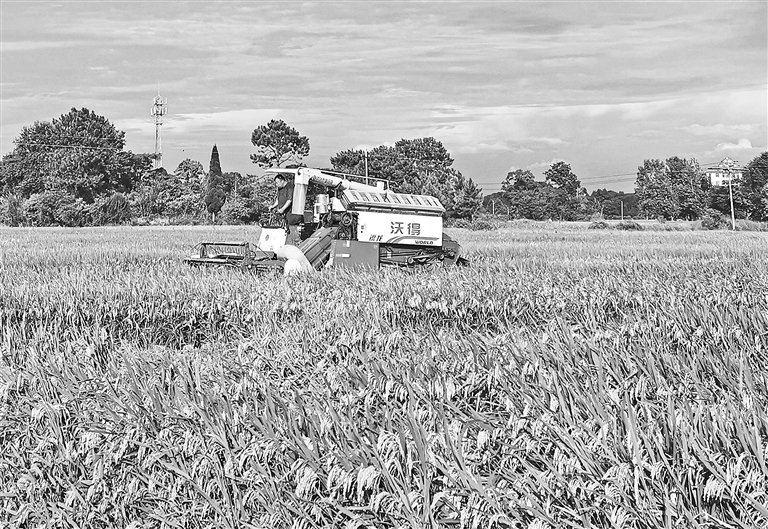 9月7日,安福县洋溪镇牌头村,农户正驾驶农机驰骋田间收割中稻。眼下,该县中稻陆续成熟,农户正抢抓农时收割,确保颗粒归仓。 特约通讯员 刘丽强摄