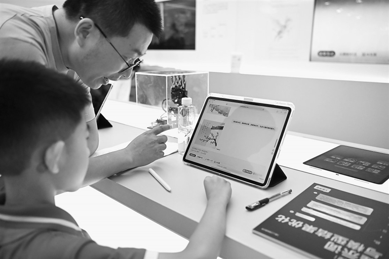 9月11日,在服贸会教育服务专题展区,潞河中学附属学校的师生在人工智能互动课堂上课。新华社记者 肖 潇摄