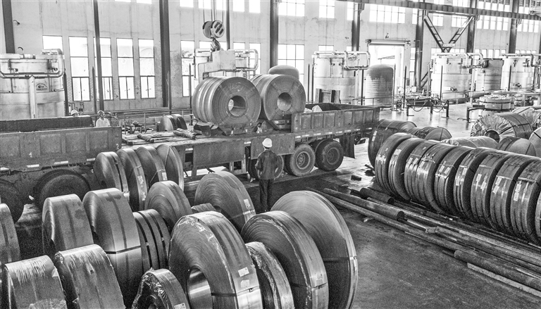 近年来,新余市持续优化钢铁产业布局,扩大细分领域领先优势,向高品质特种钢、特种合金、高性能金属材料以及下游应用领域深入迈进,推动钢铁产业稳健、有序发展。图为9月8日,位于新余经开区的高万昌新材料有限公司内,工人正在检测带钢产品质量。本报全媒体记者 邹宇波摄