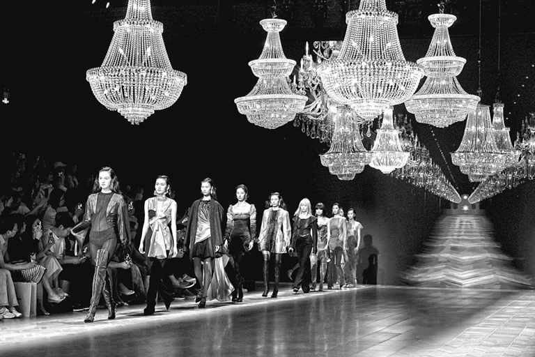 9月14日,在北京举行的“惠安时尚之夜”2025中国国际时装周颁奖典礼上,江西服装学院教师陈龙摘得第29届中国时装设计最高奖——“金顶奖”。图为陈龙获奖作品展示。