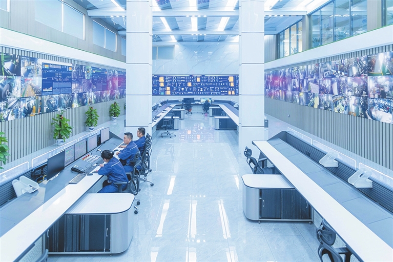 智慧管控中心打通“原料进厂—生产加工—成品出厂”全业务流程,集成制造、设备、能源、环保、物流、安保等领域,有效打破专业与部门壁垒。
