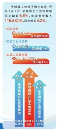 近年来,于都县以“闯”的劲头、“创”的智慧,围绕建设“产业新城”发展思路,科学打造了于都工业园区“一区三园”(即楂林上欧园区、罗坳园区、禾丰园区)空间布局,获评2024年度省级开发区综合考核第一等次,构建了以纺织服装为首位产业,电子信息为主导产业,新型材料、装备制造、新能源为重点产业的“1+2+N”产业格局,打造了纺织服装、电子信息和新型建材等3个先进制造业集群,其中纺织服装产业集群产值超900亿元。