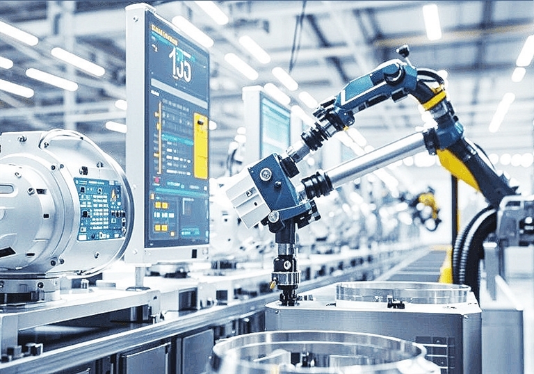 生产线上,机械臂精准抓取零件,AGV小车自动搬运物料,机器人按照预设程序完成高精度装配。研发实验室里,工程师们正测试新一代工业软件,服务器集群实时分析优化生产流程……走进井冈山经开区,智能化的生产场景已随处可见,数字化浪潮正重塑这片红色热土上的工业基因。