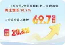 今年1至6月,全县规模以上工业增加值同比增长10.7%,工业营业收入累计完成69.7亿元、同比增长20.8%;工业用电完成11805万千瓦时、同比增长11.7%;拥有亿元以上企业13家,在库规模工业企业114家。