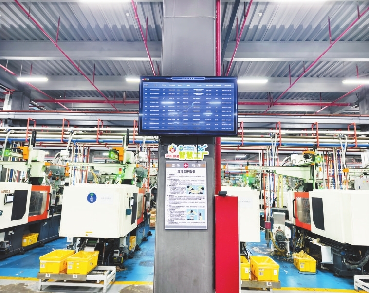 其中,通过为100台(套)双模机与超高速注塑机生产线引入先进传感器与控制系统,实现中积智造设备精准运行与实时监控,促使设备故障停机时间大幅缩短;借助5G低时延、高可靠特性,AGV小车高效精准配送物料,AGV无货架自动立体库配合WMS信息化系统助力实现仓储智能化、可视化管理;通过MES信息化系统上线,完成从订单接收、生产排程到产品下线的全程数据跟踪与分析,为企业决策提供坚实数据依据。