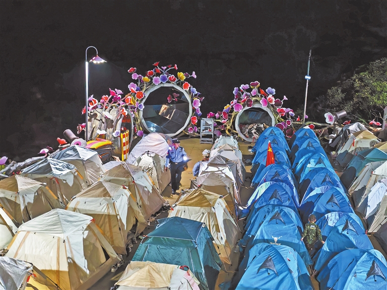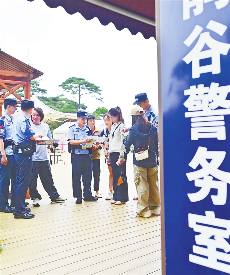 旅游高峰期,三清山主景区单日入园游客量能突破3万人,杜鹃谷警务室值守区域是游客最密集区域之一。面对客流高峰,每天凌晨5点,民辅警们便会全员到岗,开始一天的巡逻防控和交通疏导工作。为更好地服务游客,“云中”警务室所有辅警都考取了导游证,“大家每天步行2万步,接受的旅游咨询更是不计其数,晚上还要在帐篷露营区巡逻。”三清山分局党委委员、办公室主任徐德炳介绍,“单位每年给每名民辅警发5双鞋,还是不够穿。”