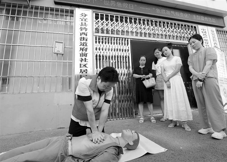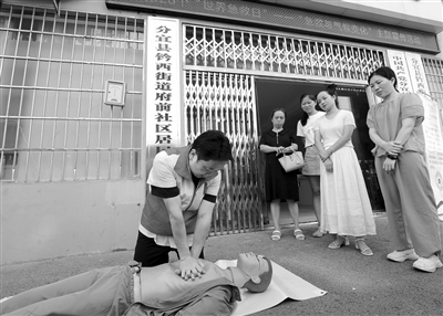 近日,分宜县红十字会联合分宜县人民医院走进钤西街道府前社区开展应急救护知识进社区活动,让社区居民掌握基本的急救技能。特约通讯员 袁建兵摄