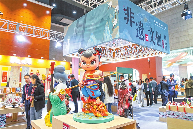 ▶9月21日,与会嘉宾在博览会上参观应用3D打印技术打印的文创产品。