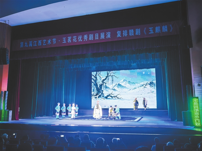 本报南昌讯 (全媒体记者徐黎明)9月18日晚,南昌群星剧场座无虚席,由上饶市广信区信河赣剧演艺有限公司复排的传统赣剧《玉麒麟》,在此参加第九届江西艺术节·玉茗花戏剧节专场展演。该剧故事取材于《水浒传》。演出现场,演员们深厚的唱功、深情的演绎感染了观众,现场不时响起热烈的掌声。