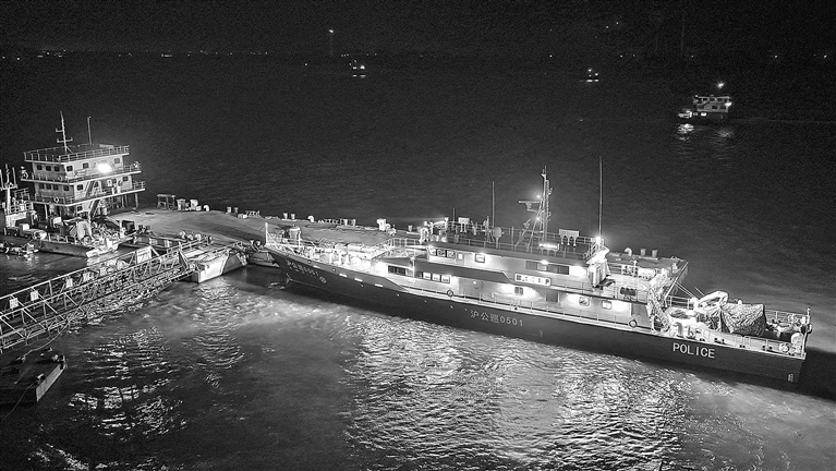 近日,江西江新造船有限公司为上海市公安局边防和港航公安分局建造的55米公安巡逻艇——“沪公巡0501”建成,预计10月初可交付。图为9月18日晚,该船进行交付前的灯光调试工作。本报全媒体记者 王蕴蓉摄