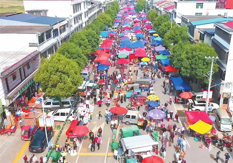 在安义县万埠镇的集市上,五颜六色的摊位绵延成趣,熙攘的人群穿梭其间。丰收的物产在此汇聚,每一声吆喝、每一抹笑靥,都把乡村的烟火气与丰收的喜悦,酿成最鲜活的丰收诗篇。