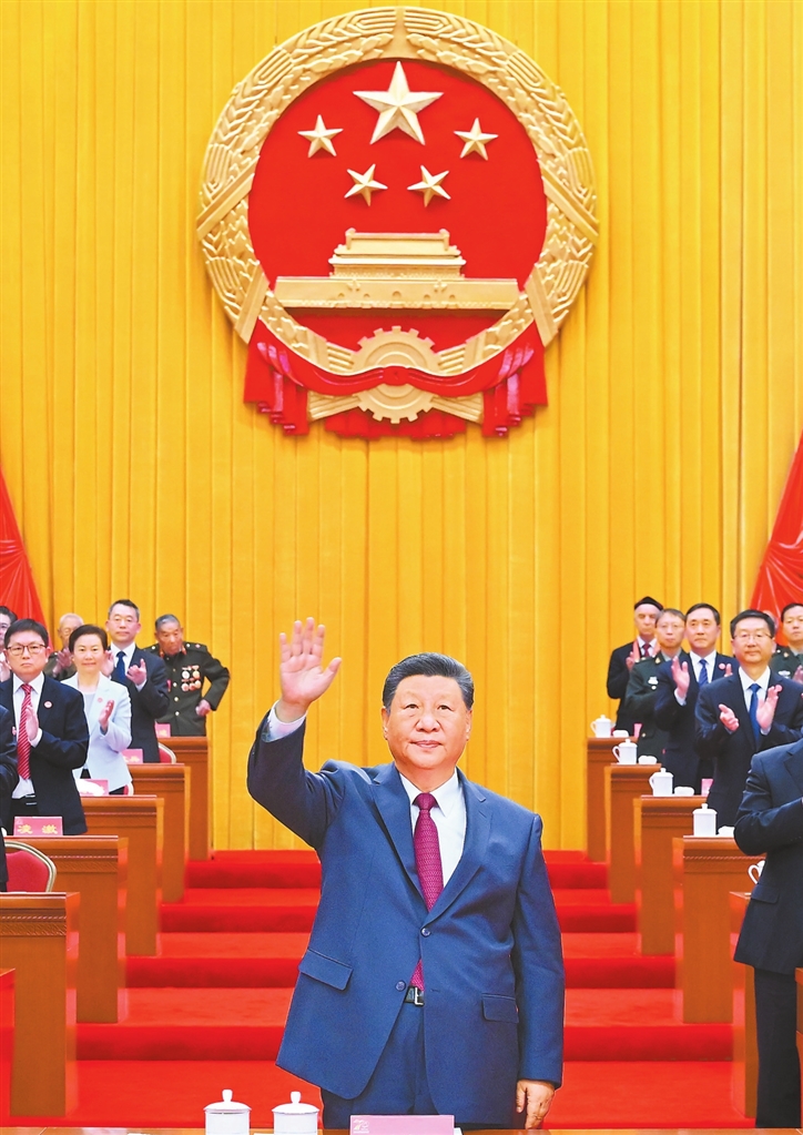 上午10时30分许,在欢快的乐曲声中,习近平等领导同志走上主席台,全场响起长时间的热烈掌声。
