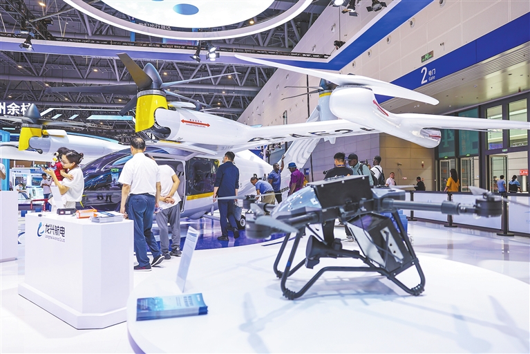 ▲9月25日,观众在博览会参观无人机。
