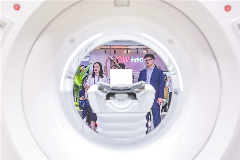 ◀9月25日,观众在博览会参观智能医疗设备。