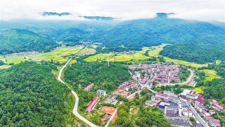 9月24日,奉新县澡下镇,“四好农村路”与金黄的稻田、山峦、民居相映成景,美不胜收。