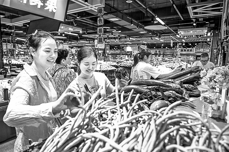 国庆中秋双节临近,南昌市青云谱区节日市场一派繁荣景象,各类商品货源充足、品种齐全,充分激发假日消费新活力。图为9月24日,在青云谱区徐家坊一超市,市民正在选购商品。