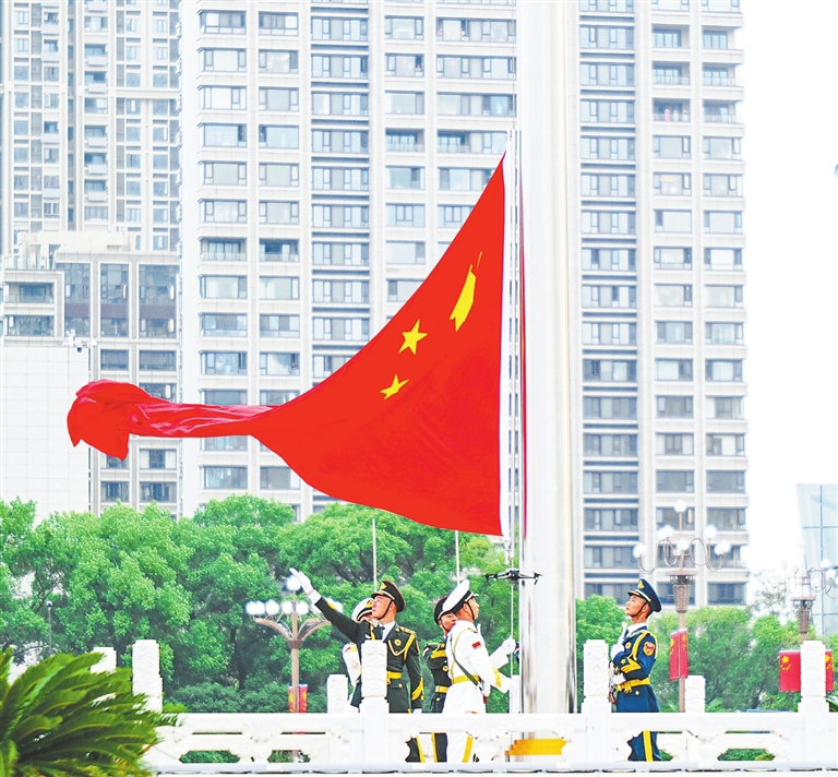 10月1日,南昌市在八一广场举行“弘扬爱国志 奋进新征程”国庆升旗仪式,来自全国各地的游客和市民齐聚英雄城,共同庆祝中华人民共和国成立76周年。本报全媒体记者 张翰林摄