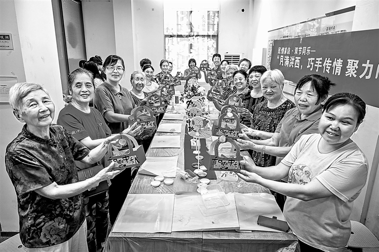 9月28日,南昌市青云谱区洪西社区开展“月满洪西,巧手传情 聚力暖民心”活动,社区居民在专业老师指导下学习做月饼。通讯员 王素倩摄