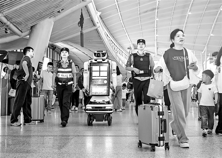 图①:1日,武汉铁路公安处武汉站派出所民警在武汉站内巡逻。新华社发(赵军摄)