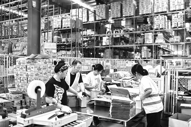 图②:1日,山东青岛市一公司仓库拣货员在拣选货物。