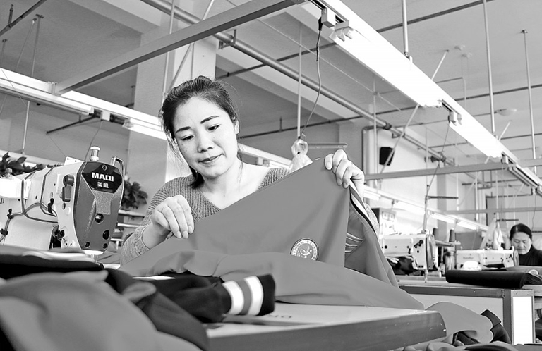 图③:2日,甘肃省平凉市城关镇工人在赶制服装订单。