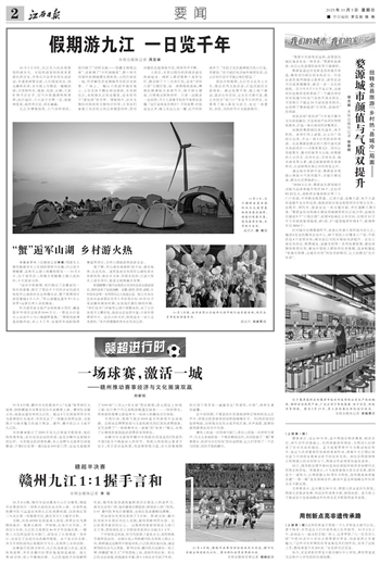 比赛进行到25分钟后,九江队逐渐进入状态,进攻阵型前移,多次在赣州队禁区腹地制造威胁。战至第42分钟,场上平衡被打破。九江队聂皓天后场解围失误,赣州队徐国森机敏断球后长驱直入形成单刀。面对出击的门将,他冷静地左脚怒射,将球送入球门死角,1∶0!赣州队率先打破僵局,全场红色浪潮瞬间沸腾。