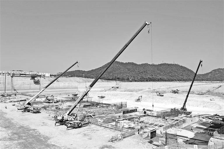 国庆中秋假期,乐平水利枢纽工程建设保障项目按计划推进。图为10月7日,乐平水利枢纽工程二期泄水闸底板施工正在进行中。本报全媒体记者 吴福清摄