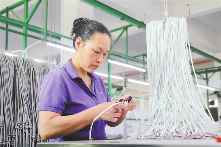 国庆中秋假期过后,峡江县各企业组织员工开足马力,赶制各类订单产品,满足市场需求。图为10月11日,位于峡江县的江西坤诚电线电缆有限公司生产车间,工人正在赶制订单。