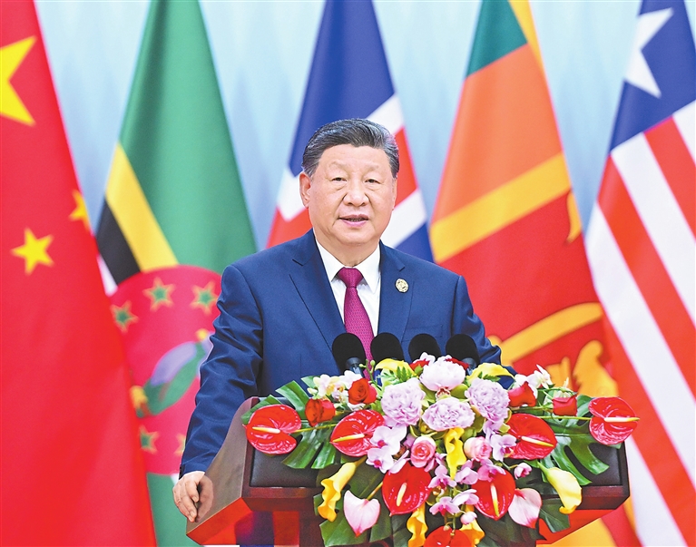 习近平指出,中国坚持将妇女事业融入中国式现代化宏阔实践,妇女事业取得历史性成就、发生历史性变革,中国妇女在经济社会发展中真正发挥着“半边天”作用。中国积极以自身发展为全球妇女事业提供机遇和保障,推动国际妇女交流合作。未来5年,中方将再向联合国妇女署捐款1000万美元;提供1亿美元全球发展和南南合作基金额度,同国际组织合作实施促进妇女和女童发展合作项目;在民生发展领域援助1000个“小而美”项目;邀请5万名妇女来华交流研修;设立“全球妇女能力建设中心”,合作培养更多女性杰出人才。