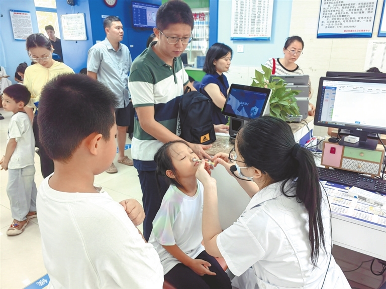 秋冬季节是流感等呼吸道传染病高发期,接种流感疫苗是预防和控制流感的有效措施。图为近日,在南昌市西湖区朝农街道社区卫生服务中心预防接种门诊,不少家长带着孩子前来咨询并接种流感疫苗。本报全媒体记者 杨 莹摄