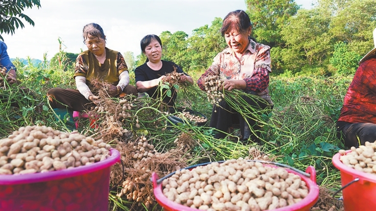 在屏山镇河东村的花生种植基地里,农户黄广东弯腰拔起花生植株,一串串饱满的花生果挂满根部。今年他家种了5亩翻秋花生,预计能收2000多公斤。黄广东的增收底气,源于屏山镇对翻秋花生特色产业的培育。起初,镇里农户不相信小小花生能致富,不愿多种。为提高他们的积极性,镇里不仅邀请农技人员上门指导,推广翻秋花生种植技术,还牵头成立合作社,解决农户的后顾之忧。