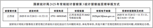 国家统计局2025年常规统计督察第3统计督察组公布受理反映江西省统计违纪违法行为举报方式