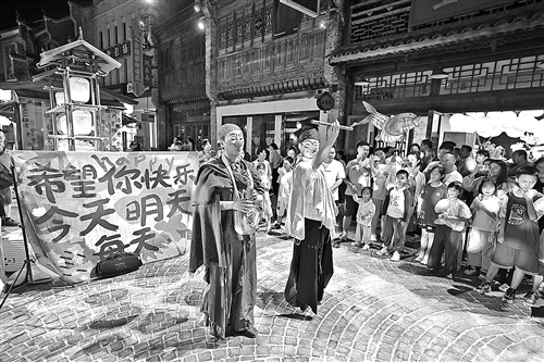 10月18日晚,位于景德镇陶阳里历史文化街区的中山北路步行街,“陶阳夜游”系列活动吸引众多市民和游客驻足观赏。