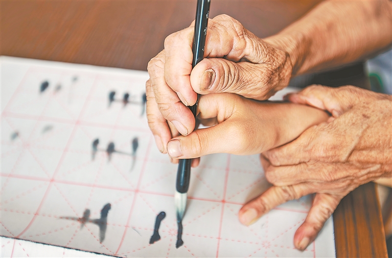“这里离广东近,年轻人都去那边务工了,很多孩子就成了留守儿童。”肖春兰一边帮孩子扶正握笔姿势,语气里带着心疼:“看着娃们没人管,我心里不是滋味。当了一辈子老师,就想教他们一点东西,让孩子们的课余生活丰富一些。”