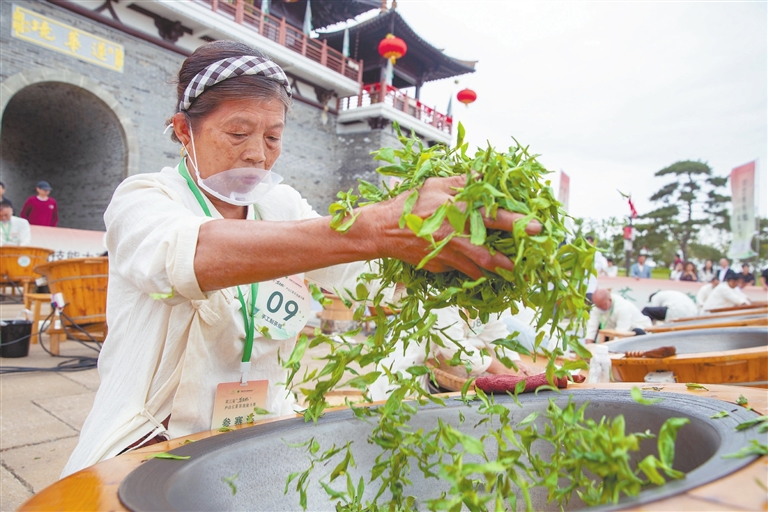 10月18日,第三届“茶圣杯”庐山云雾茶技能大赛在庐山市举办。图为参赛人员在大赛现场展示加工技艺。据了解,庐山市云雾茶茶园面积达3.26万亩,年产值52.75亿元。