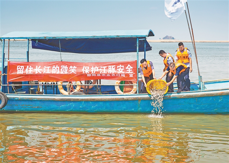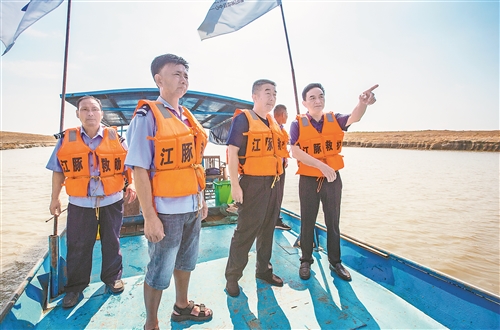 2017年,在蒋礼义等渔民的发起下,鄱阳县成立了全省第一个江豚保护协会,他们开始奔走于湖区,开展保护江豚的实践行动。第二年,在长江生态保护基金会的资金支持下,鄱阳县成为“捕鱼人”转型“护鱼护豚员”的协助巡护制度试点区,蒋礼义联合6名退捕渔民组成“鄱阳县江豚协助巡护队”。