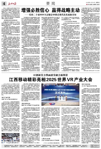 从技术理念的引领,到千行百业的赋能,从高端论坛的智慧激荡,到扎实可靠的运行保障,江西移动在2025世界VR产业大会上的精彩亮相,是其多年来深耕VR领域、坚持创新驱动的集中体现。未来,江西移动将继续秉持开放合作的态度,充分发挥客户规模、云网协同与生态资源优势,聚力突破VR技术与生态壁垒,全力打通场景、内容、应用、终端等关键节点,携手产业伙伴,全力推动VR融入百业、服务大众,为江西省乃至全国VR产业的跨越式发展,为共创虚实融合、智能普惠的美好未来贡献更大力量。(王席传 文/图)