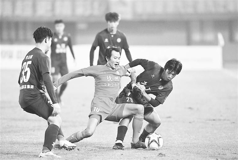 抚州队并未放弃,选择大举压上全力进攻。比赛中,抚州队球员陈双飞曾晃过九江队后卫形成射门机会,可惜足球击中边网,错失良机。