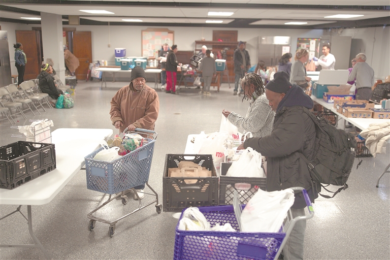 10月25日,人们在美国印第安纳波利斯的一处食物赈济处打包食品。 新华社/美联