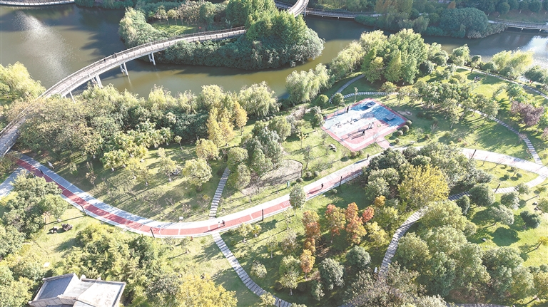 10月25日,航拍下的宁都县龙溪湖生态公园景色宜人。近年来,该县推进环境整治与生态修复,积极建设“口袋公园”及“15分钟健身圈”,有效提升城市宜居度和市民幸福感。