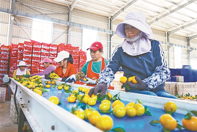 “新余蜜桔”是新余市最具特色、最具优势的国家地理标志,蜜橘产业是名副其实的富民产业。近年来,该市出台多项政策,每年投入专项资金,聚焦品种改良、基础设施和品牌建设,全力提升产业规模化水平,培育省级龙头企业8家、市级龙头企业18家,建成10万亩全国绿色食品原料标准化基地,形成了七里山、一字岭、蒙山“三大果业带”产业集群。2024年,全市蜜橘种植面积达21.2万亩,年产鲜果26.4万吨,年产值突破13亿元,带动5万余人就业。更令人惊喜的是,其出口量连续多年增长,据相关部门统计,今年开始采摘以来至10月22日,全市蜜橘累计销售量已达2.84万吨,其中出口量达1.89万吨,占总销量的66.5%。
