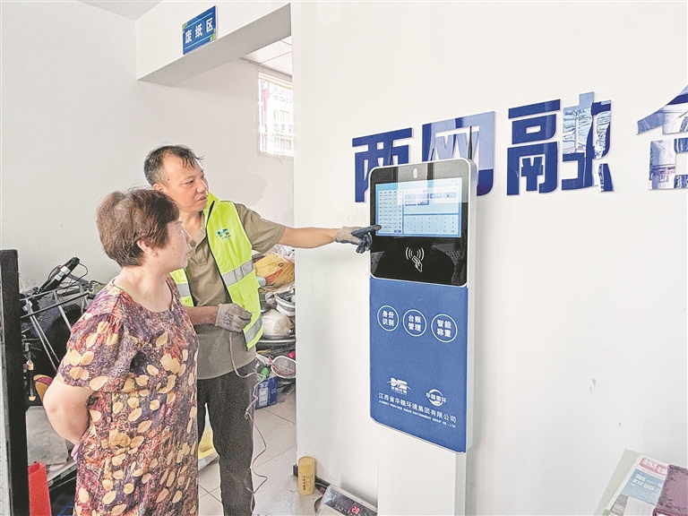 “想卖旧报纸,打电话等半天才有人上门,称重时还被压秤。以前处理废品,真是费时又闹心。”近日,在吉安市吉州区北门街道福兴亭社区的“i吉收”回收点,居民余安娜一边将捆扎整齐的废品放到智能磅秤上,一边向记者吐槽过往的经历。与此同时,智能称重屏幕瞬间跳出“塑料3.2公斤,5.12元”的字样。“现在下楼5分钟就能搞定,价格透明,再也不用讨价还价了。”余安娜笑着说。